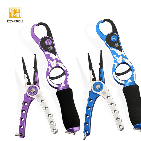 Alicates de pesca de aluminio, línea trenzada de corte de agua salada, ganchos de extracción de peces con cordón y funda de plástico