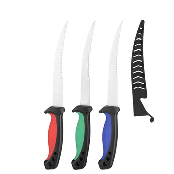 Cuchillo de Filetear para Cocina y Pesca, de Acero Inoxidable, Mango de PP+TRP en Azul, Rojo y Verde, Acabado Pulido, para Mano Derecha, Venta al Por Mayor